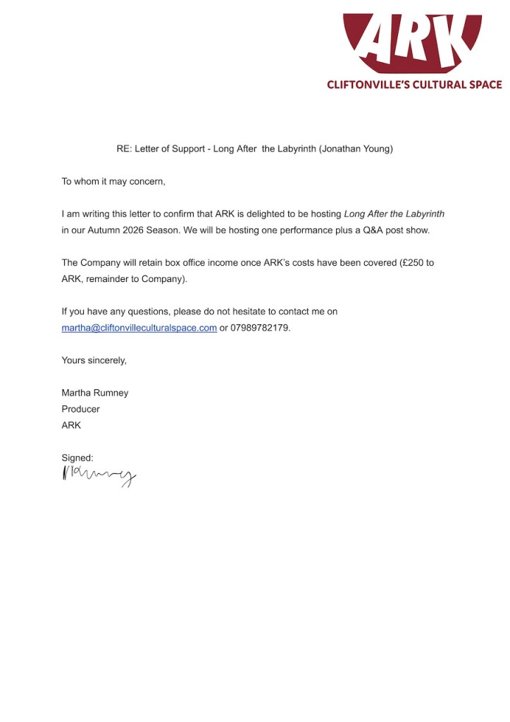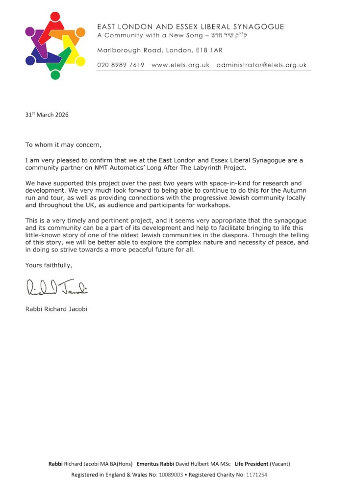 ‘Taking part in your amazing production probably rates amongst the top twenty events to have occurred in my life and as I am 69 that is really saying something!!!’